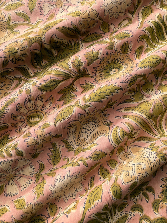 ハンドブロックプリント ピーチ ピンク 花柄 コットンプリント生地 #287-7