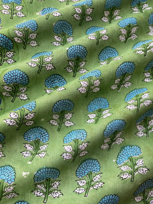 ハンドブロックプリント グリーン 花柄 コットンプリント生地 #287-17