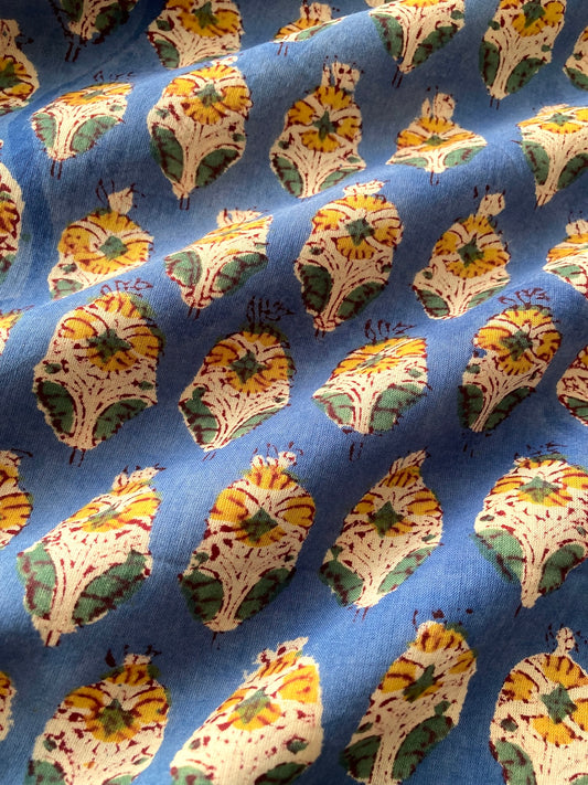 ハンドブロックプリント ブルー コットンプリント生地 #287-6
