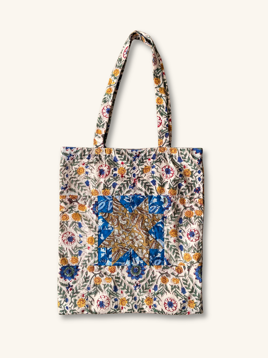 エブリデイバッグ ブロックプリント生地 コットンバッグ トート・ショルダー・巾着