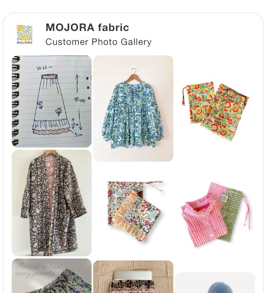 今回はガウン風コートとワンピースとパンツを購入しました。いつもとても親切で丁寧に対応してくださり、MOJORAさんのお人柄が伝わり、いつも安心して購入させていただいています。ガウン風コートは柄とデザインに一目惚れで、即購入させていただきました。生地のチョイスも最高にかわいいです。ワンピースやパンツも柄が選ぶことができるのも楽しいです。夏は特に、インド布は涼しく快適です。