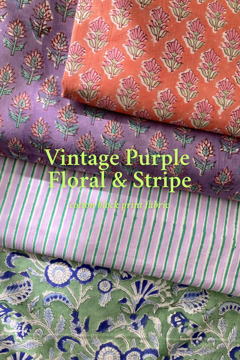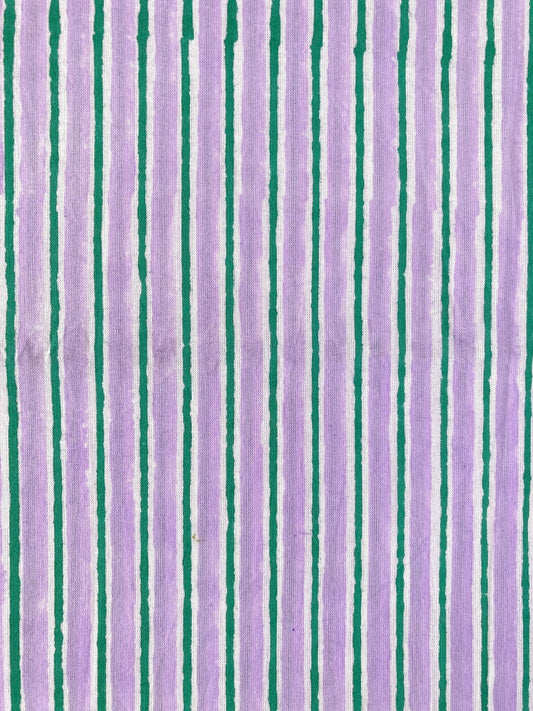ハンドブロックプリント パープル x グリーン ストライプ コットン生地 #273-13