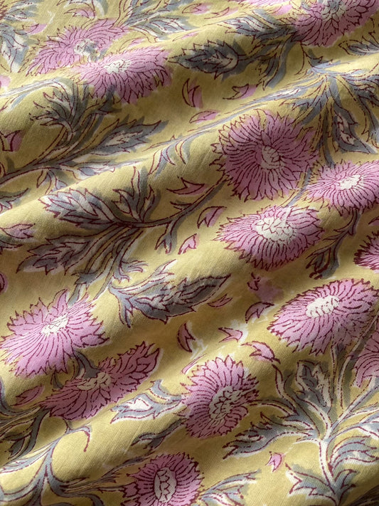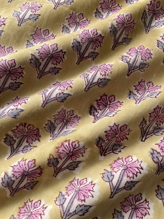 ハンドブロックプリント イエロー 花柄 コットンプリント生地 #294-6