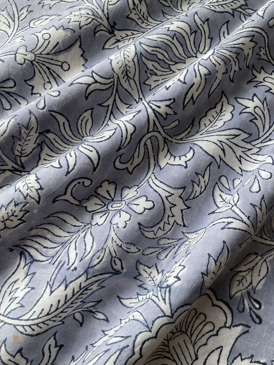 ハンドブロックプリント アイスグレー コットンプリント生地 #294-4