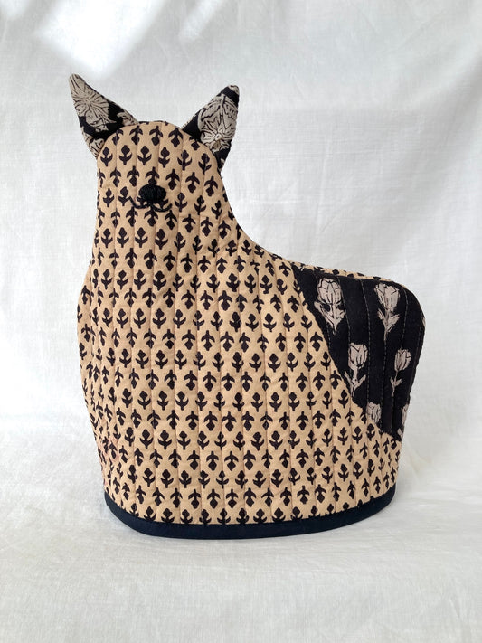 ハンドブロックプリント ネコさん ティーコージー ポットカバー