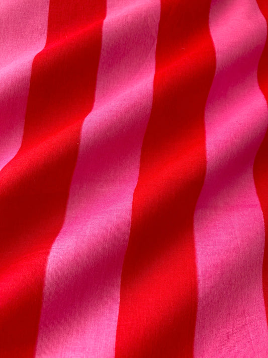 ハンドブロックプリント レッド x ピンク 花柄 コットンプリント生地 #287-15