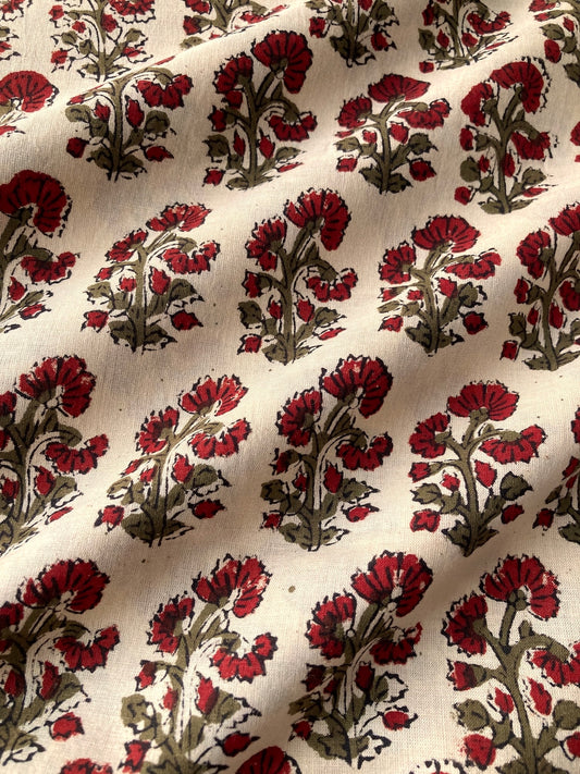 ハンドブロックプリント ナチュラル 大花柄 コットンプリント生地 #273-5