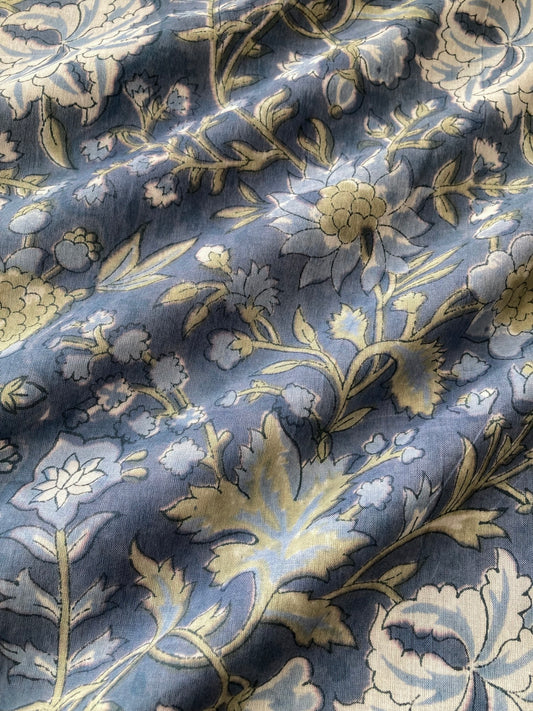 ハンドブロックプリント アッシュブルー コットンプリント生地 #289-12