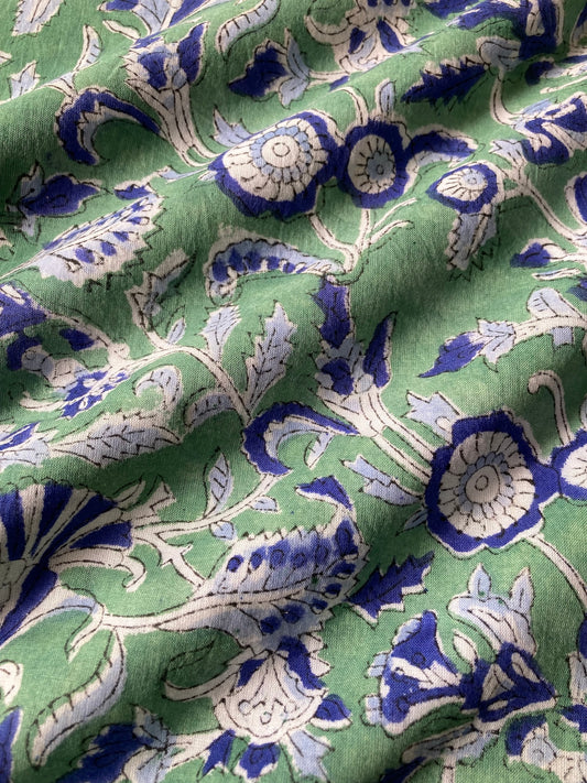 ハンドブロックプリント バグルー グリーン コットン生地 #289-10