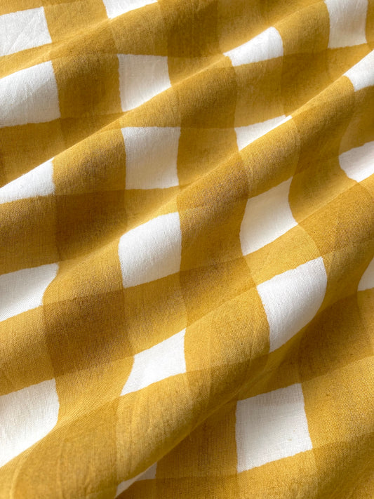 ハンドブロックプリント イエロー チェック 花柄 コットンプリント生地 #289-20