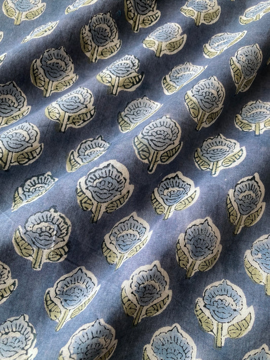 ハンドブロックプリント アッシュブルー コットンプリント生地 #289-6