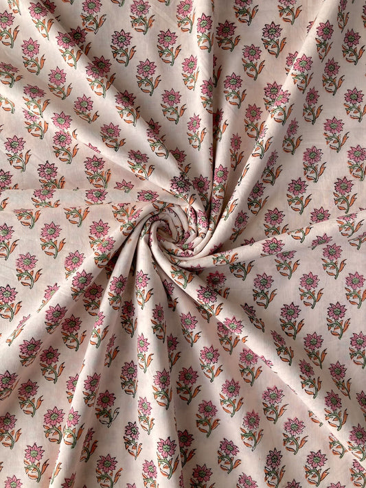 ハンドブロックプリント ピンク 小花柄 コットンプリント生地 #296-2