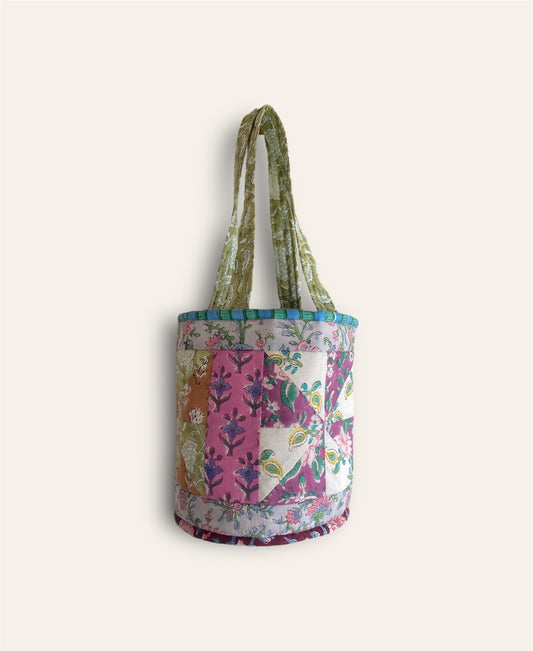 Hand Block Print Fabric Quilted Bucket Bag #193