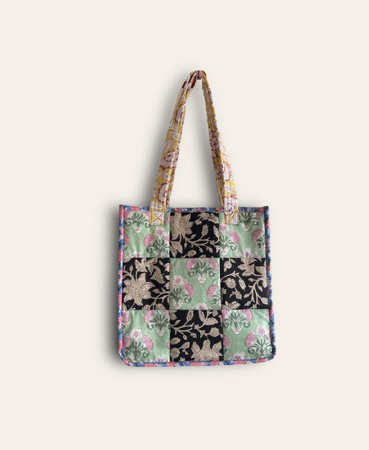 Block Print Patchwork Quilted Square Tote Bag #194