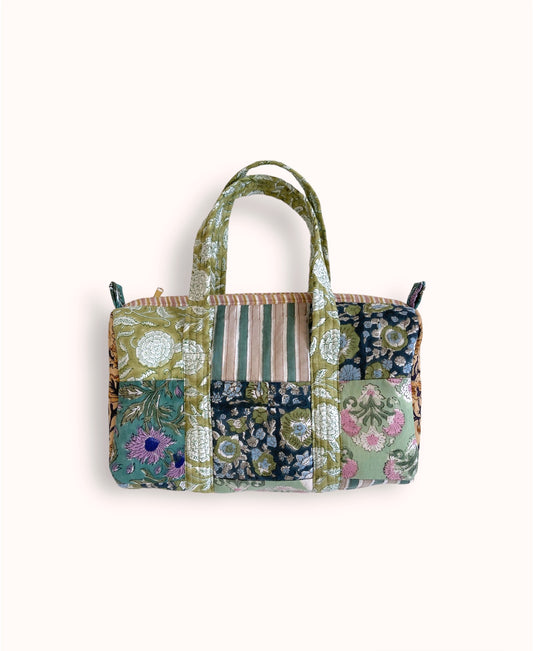 Hand Block Print Fabric Quilted Travel Bag Weekend Bag