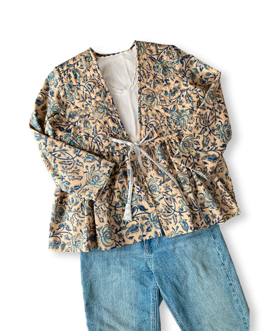Hand Block Print Quilted Cardigan Jacket Blouse