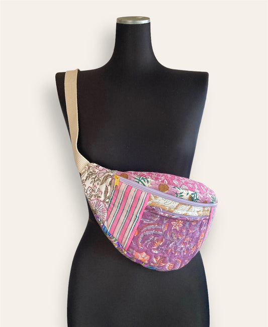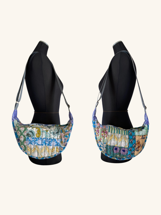 Hand Block Print Patchwork Quilted Half Moon Body Bag
