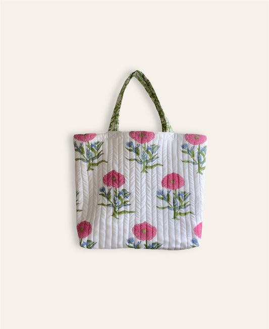 Hand Block Print Quilted Tote Bag #quilted-tote