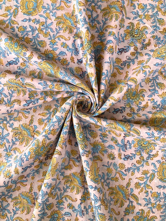 Hand Block Print Wheat Color Floral Cotton Fabric #272-12