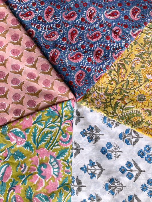 India Hand Block Print Multicolor Cotton Assorted Patchwork Cloths Fabric 50pcs Bandle Scrap