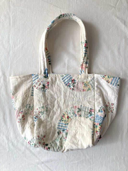Authentic Vintage Patchwork White Quilt Tote Bag