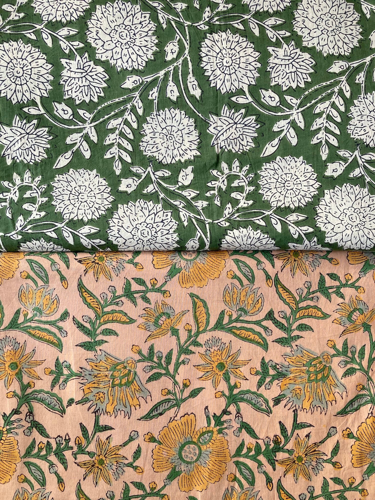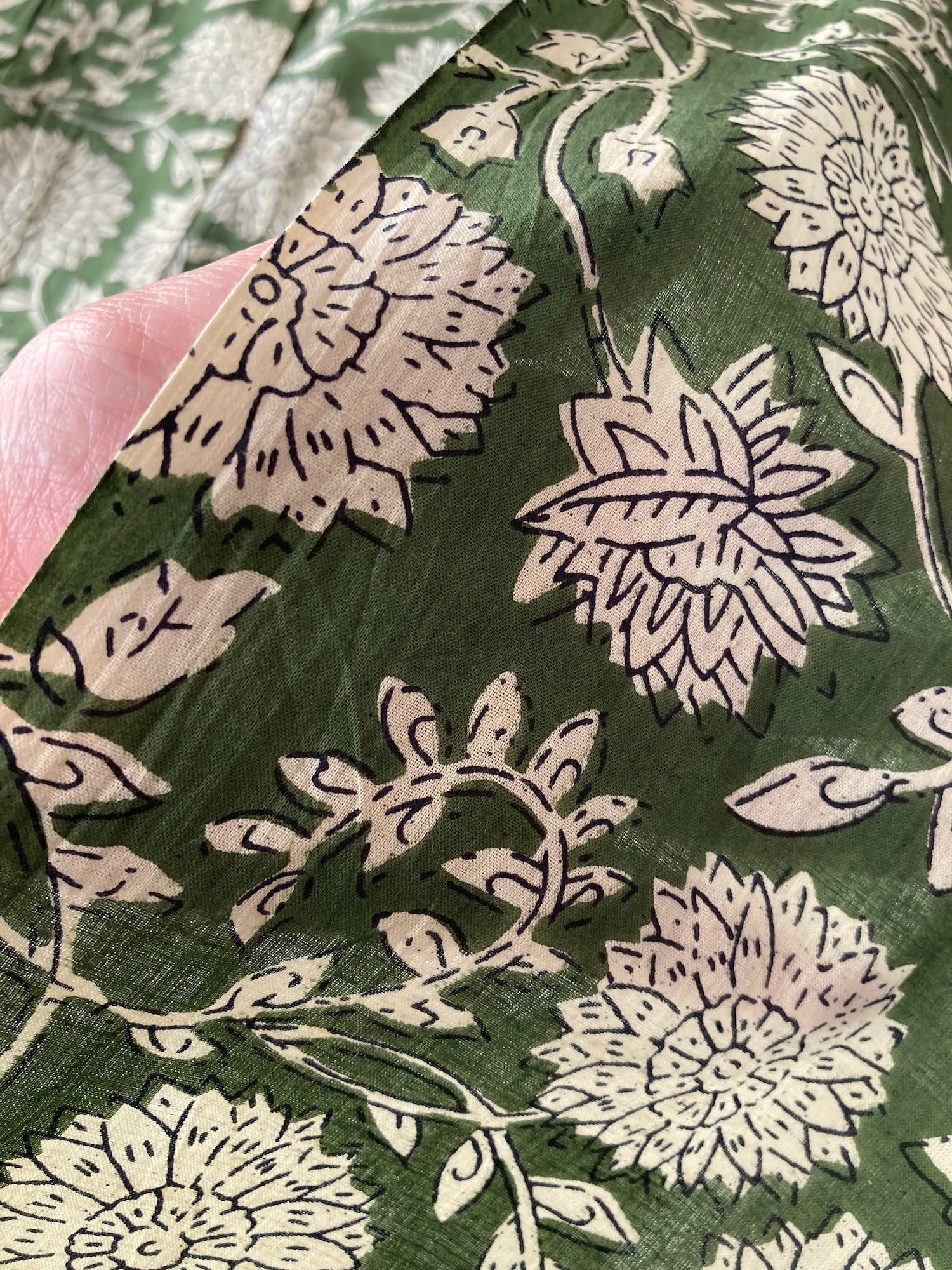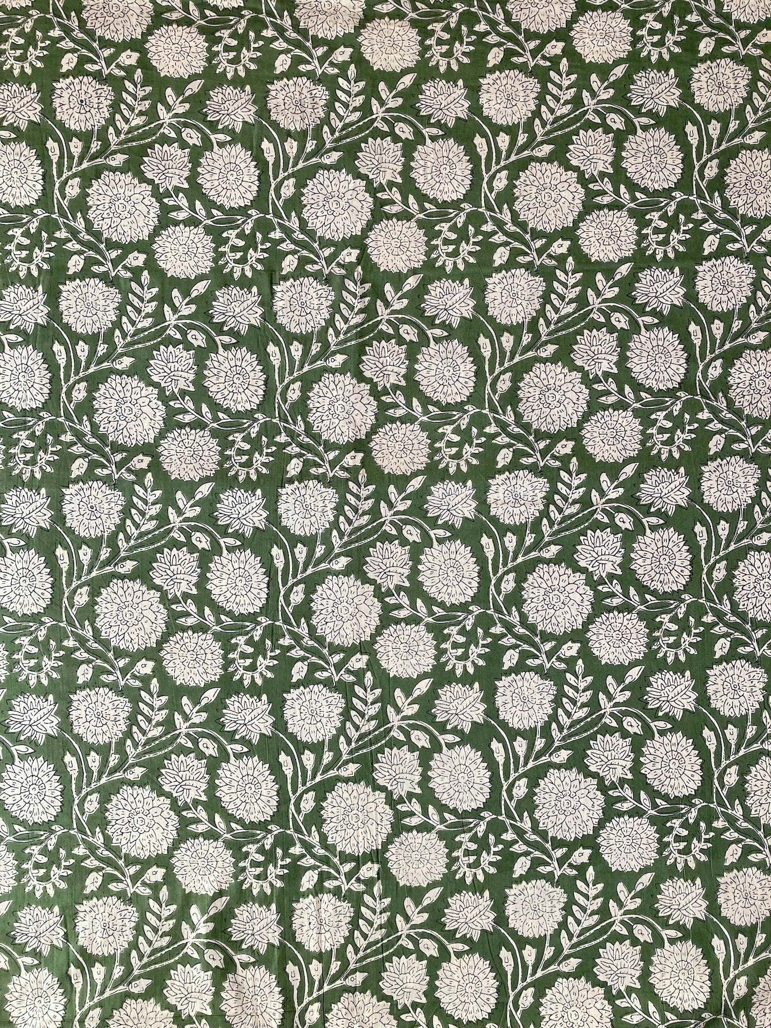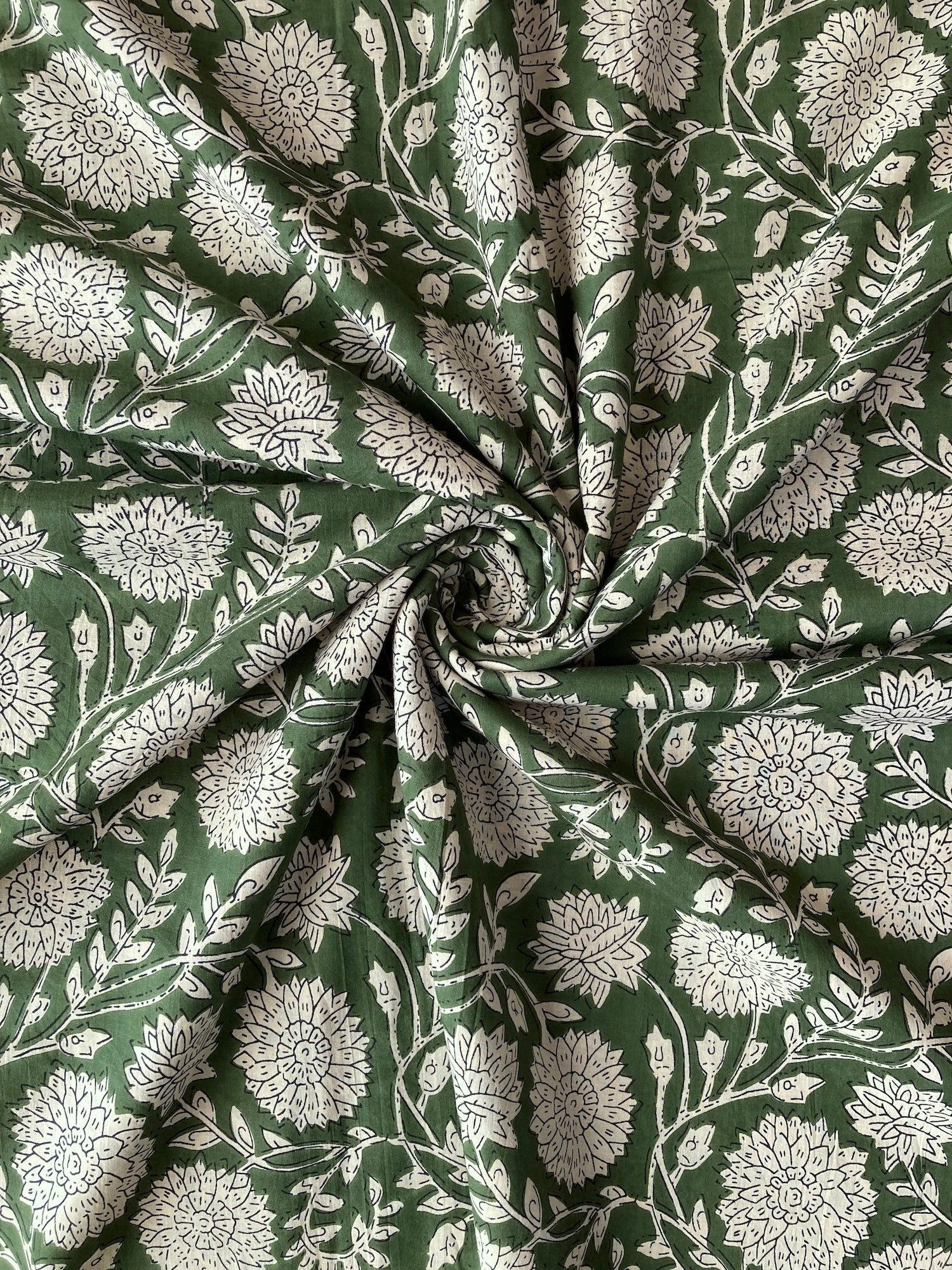 Hand Block Printed Fabric Bagru Green Fabric #289-10