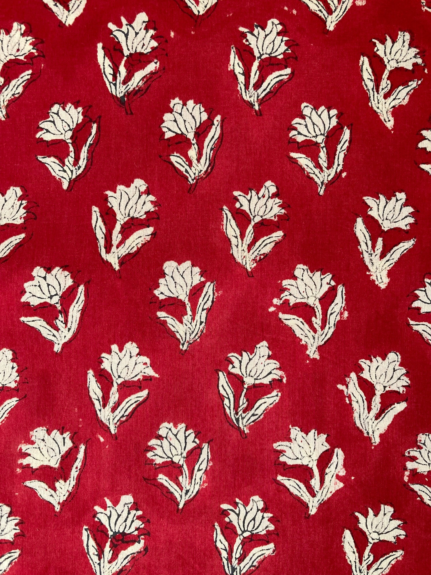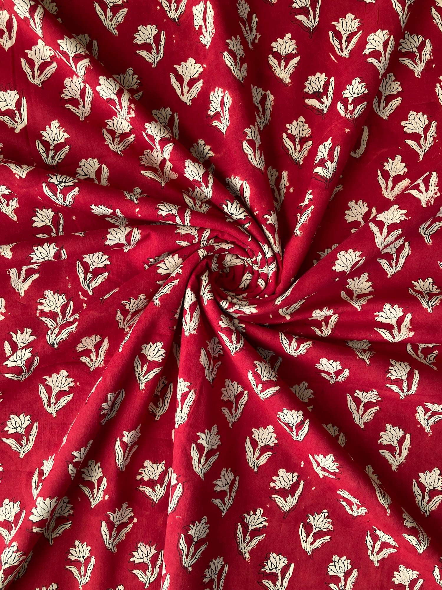Hand Block Printed Fabric Bagru Red Fabric #289-3