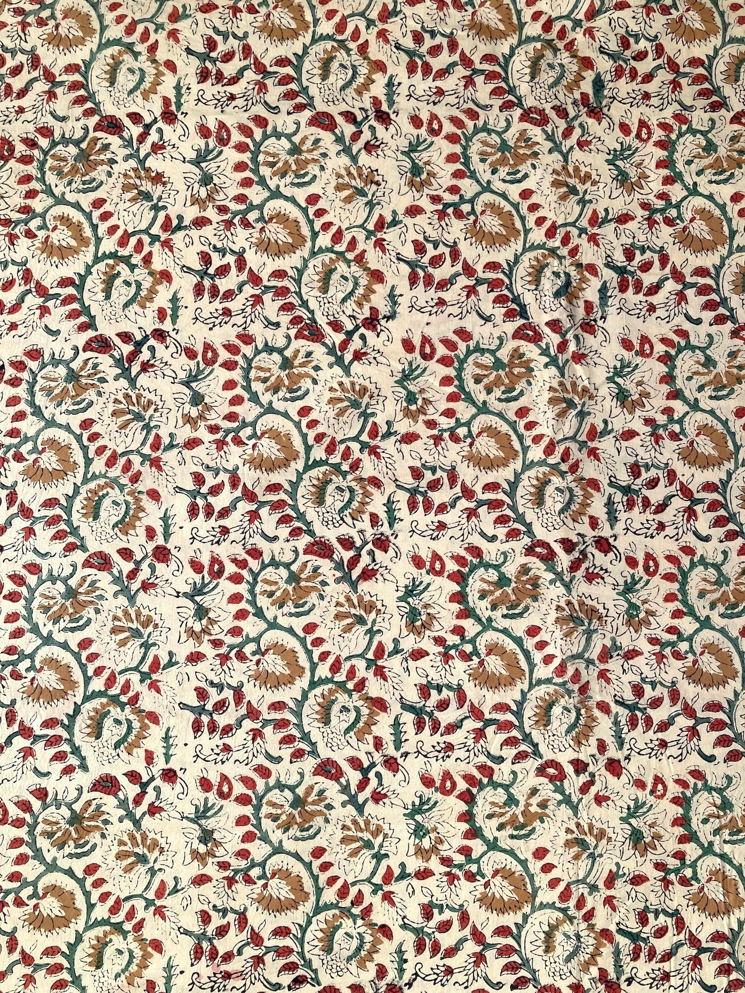 Natural-dyed colors might bleed on the first few washes or rub on skin & light colored garments. Being block-printed.