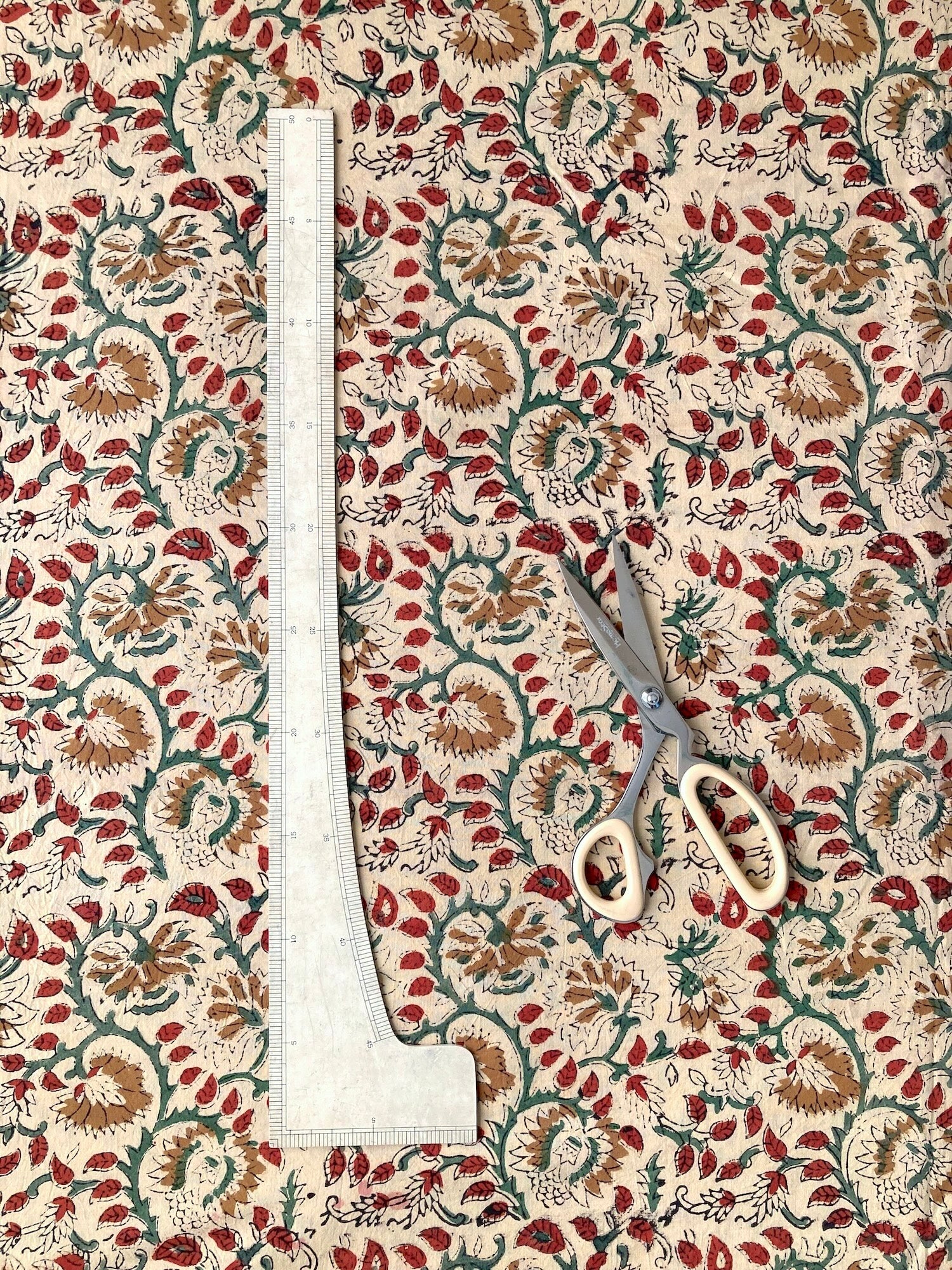The thin 100% cotton material is easy to sew and is recommended for handmade items. The wonderful colors and patterns of the fabric will create a lovely finished product no matter what you make, so have fun creating your own unique items.This fabric is called "block print," which is made using a traditional technique handed down in India for hundreds of years, in which a large wooden plate is pressed against the cloth and dyed.The entire process is done by hand, as it has been in the past and still is today. The warm, rustic, and beautifully colored fabrics are processed into a variety of products and have become popular items with fans all over the world.*************************************************