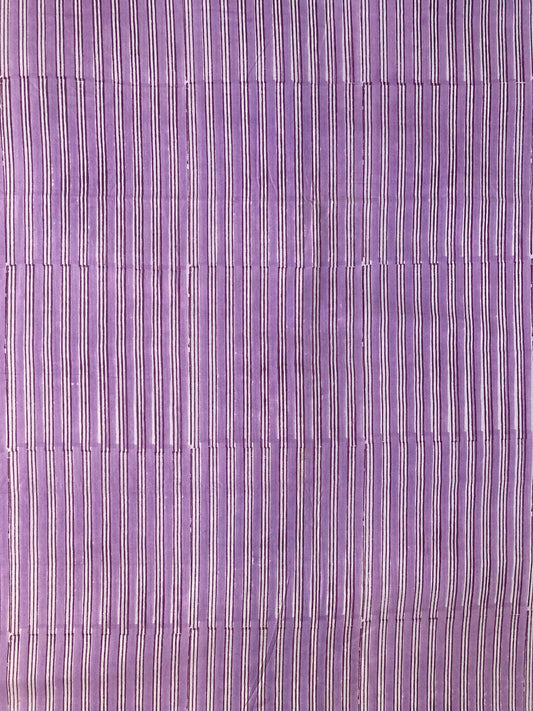 Hand Block Print Purple & White Striped Cotton Fabric #273-1