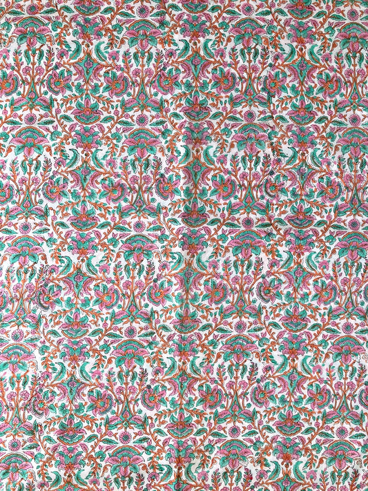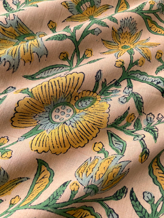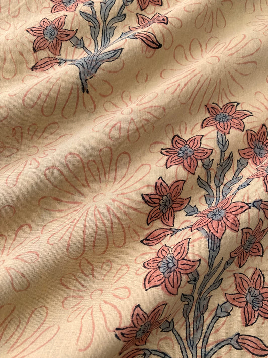 Hand Block Print Peach Color Floral Cotton Fabric #287-7