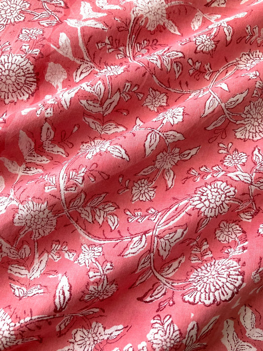 Hand Block Print Pink Color Floral Cotton Fabric #273-11