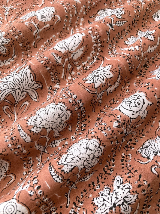 Hand Block Printed Cotton Fabric Rose Tan #273-8