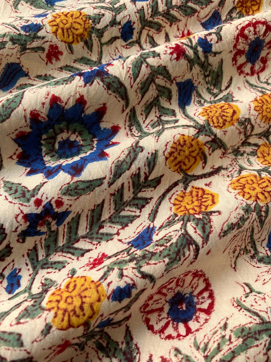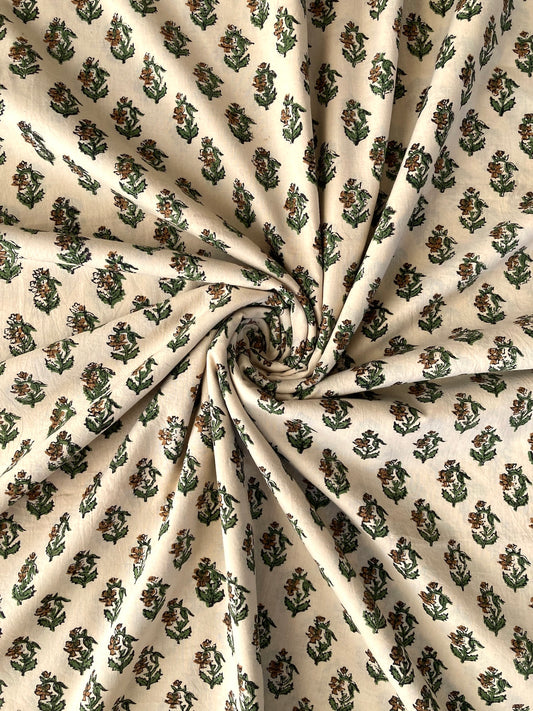 Hand Block Print Wheat Color Floral Cotton Fabric #272-12