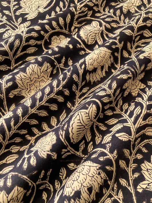 Hand Block Print Bagru Black Floral Cotton Fabric #249-21