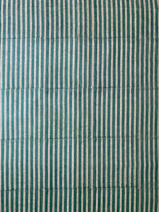 Hand Block Print Striped Green Cotton Fabric #273-9