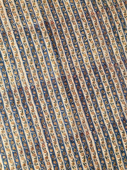 Hand Block Print Striped Floral Cotton Fabric #272-11