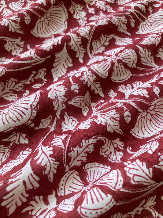 Hand Block Printed Cotton Fabric Burgundy #272-15
