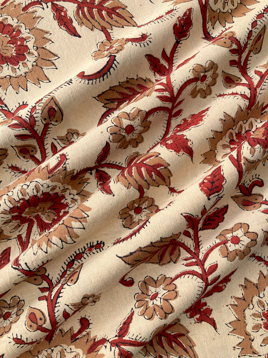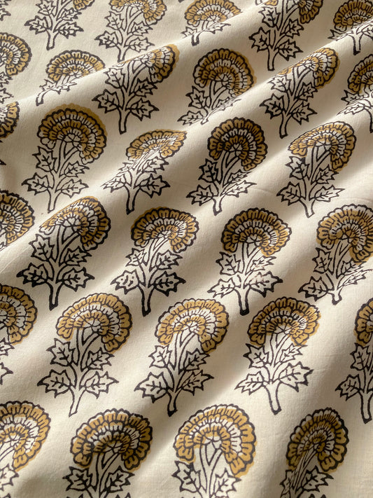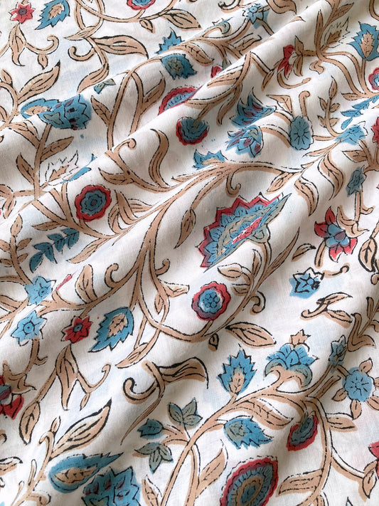Hand Block Printed Cotton Fabric Natural Color #185-31