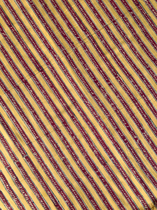 Hand Block Print Mustard x Red Striped Cotton Fabric #197-27