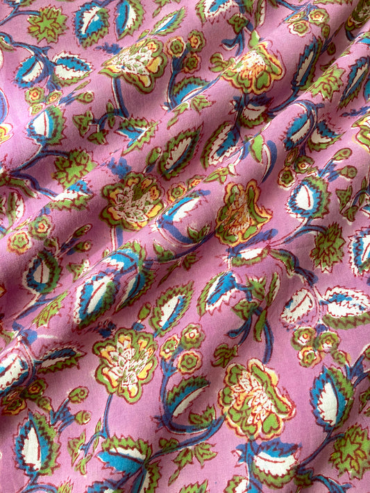 Hand Block Print Floral Cotton Fabric Lilac #224-25