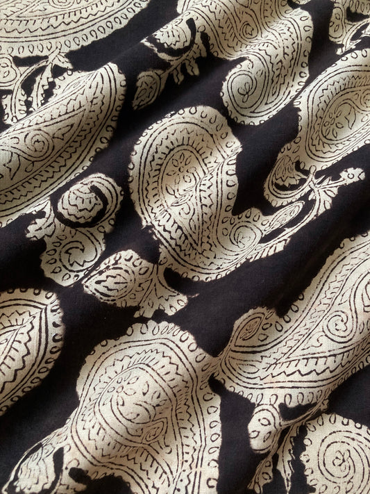 [ pre-cut 80cm ]Hand Block Printed Cotton Fabric Black Bagru Paisley #230-10