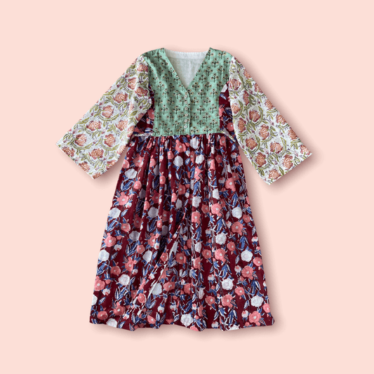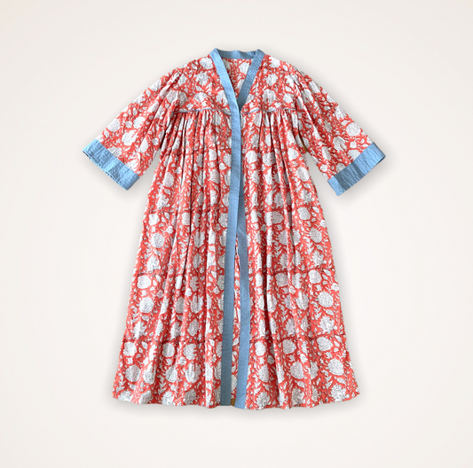 Hand Block Printed Fabric Color Block Long Kimono #shima-instock