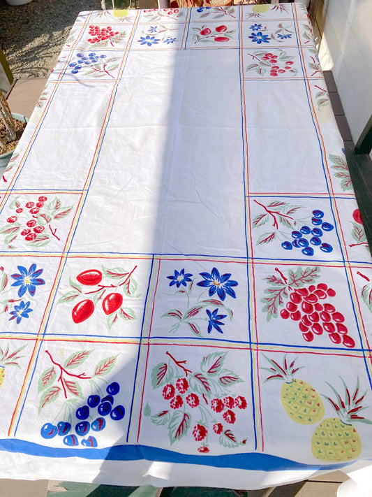 Vintage 50s USA ”Simtex” Fruit Print Cotton Tablecloth