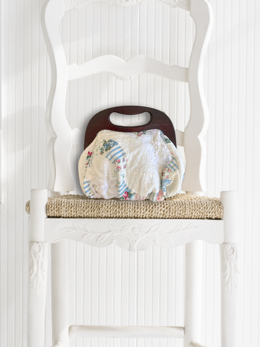 Vintage Quilt Patchwork Clasp Bag with Wooden Handle