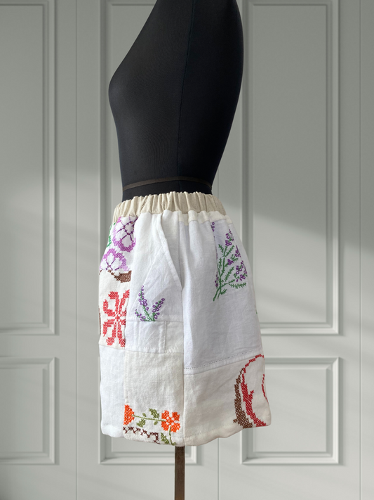 Upcycled Pants Made from Colorful Vintage Embroidered Cotton Fabric