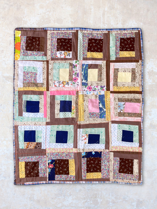 Vintage Handmade Log Cabin Patchwork Baby Quilt / Throw / Mini Rug / Blanket