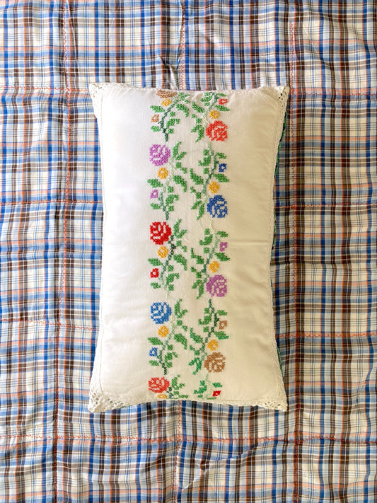 Vintage Cross Hand Stitch Cotton Cushion Cover / Pillow Case