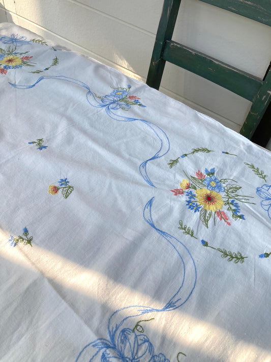 Vintage White Cotton Eyelet Cutwork Embroidered Tablecloth