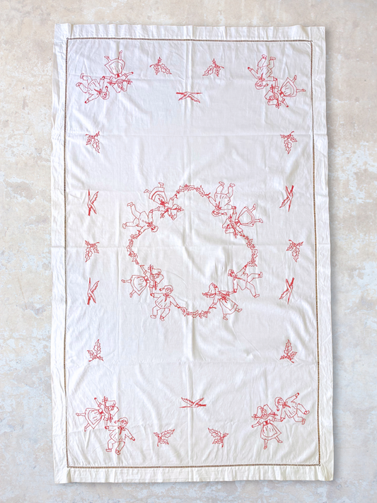 Antique French Cotton Cloth with Red Embroidery – Alsace Vintage Table Linen